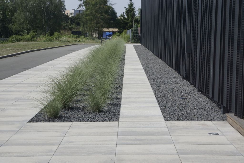Design kostek i płyt przeznaczonych na podjazd ma duże znaczenie, gdyż jego nawierzchnia powinna stanowić spójną całość z resztą aranżacji i stylem domu. Wiele ze współczesnych projektów nawiązuje do modernizmu, dlatego projektując nawierzchnię podjazdu warto rozważyć prefabrykaty w kolorach szarości. Barwa ta jest na tyle uniwersalna, że sprawdzi się również w przypadku stylu skandynawskiego czy klasycznego. Bardzo popularne w ostatnim czasie są też płyty wielkoformatowe. Przykładem takiego rozwiązania jest płyta Polbruk Magna. Występuje ona w dwóch grubościach: 8 i 10 cm. Pierwsza z nich jest dostępna w wymiarach 50×75 cm i 100×75 cm, a druga – 50×75 cm. Płyty z tej linii posiadają gładką fakturę i występują w trzech melanżowych wersjach kolorystycznych – nerino, korten oraz latte. Każdy z nich pasuje do nowoczesnej architektury, ale z powodzeniem sprawdzi się także w innych aranżacjach stylistycznych. Osobom poszukującym nieco bardziej odważnych, a zarazem ekologicznych rozwiązań na podjazd, można polecić nawierzchnie częściowo ażurowe, która umożliwiają odprowadzenie wód opadowych bezpośrednio do gruntu. Przykładem takiej płyty jest Polbruk Extrano. Charakteryzuje ją niesztampowy i bardzo nowoczesny design. Płyta ma kształt kwadratu o wymiarze 50×50 cm i grubość 7cm. To, co sprawia, że charakteryzuje się ona ciekawym wzornictwem, to regularne otwory przypominające kubistyczne kłosy zboża lub tygrysie pasy. Extrano oferuje również interesujący wybór kolorystyki. Wszystkie elementy są utrzymane w odcieniach szarości, takich jak biały, nerino, stalowy oraz bazaltowy, co zapewnia duże możliwości projektowania aranżacji w stylu nowoczesnym lub minimalistycznym. Po wyborze rodzaju płyt na podjazd, warto również zastanowić się nad dodatkowymi, funkcjonalnymi rozwiązaniami, dzięki którym podjazd będzie bardziej komfortowy i reprezentacyjny.