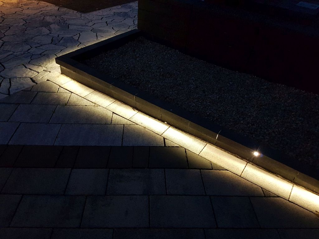 Budując podjazd warto przemyśleć jeszcze kilka aspektów: trwałość konstrukcji i bezpieczeństwo poruszania się po podjeździe. Na bocznych granicach podjazdu wskazane jest wykonanie obrzeży. Wzmacniają one konstrukcję nawierzchni i zapobiegają jej rozsuwaniu się na boki. Obrzeża mają również walor dekoracyjny i często wytyczają granice z terenem zielonym. Niektóre są tak zaprojektowane, że pozwalają zwiększyć bezpieczeństwo poruszania się po podjeździe. Przykładem takiego rozwiązania jest obrzeże Polbruk Flesz. Ten, utrzymany w odcieniach szarości, betonowy prefabrykat posiada kształt odwróconej litery „L”, pod której daszkiem znajduje się miejsce na taśmę LED. Podświetlone krawędzie i nawierzchnia podjazdu pozwala uzyskać nie tylko interesujący efekt wizualny, ale również zdecydowanie zwiększa bezpieczeństwo manewrów samochodowych po zmierzchu.