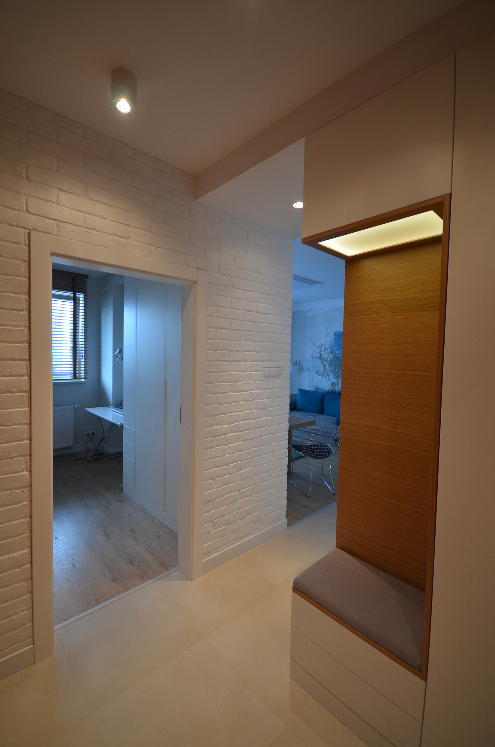 Ściany w przedpokoju mogą być narażone na zabrudzenia, dlatego warto zastosować materiały łatwe w utrzymaniu. Może to być fornir, materiałowy panel (to dość drogie rozwiązania) czy tańsza, ale efektowna cegła, np. BJM Bricks. Sprawdzi się ona zarówno w nowoczesnych czy klasycznych wnętrzach oraz industiralnych loftach. Płytki BJM Bricks wytwarzane są ze wzmacnianego gipsu z dodatkiem włókien, co przy niewielkiej grubości zapewnia im wysokość twardość i odporność na uderzenia. Umieszczone są na elastycznych arkuszach o powierzchni 0.21m2, dzięki czemu ich montaż jest szybki i bardzo prosty.