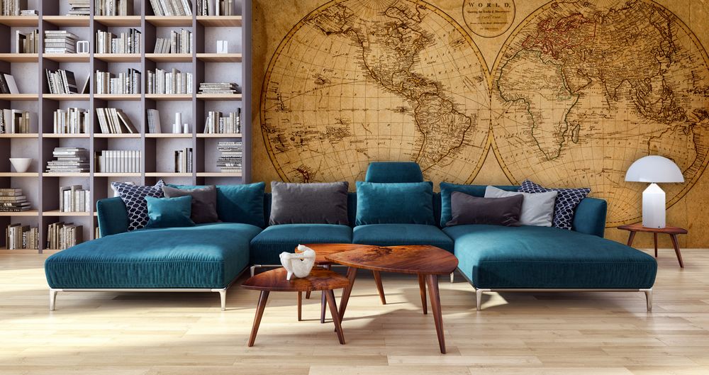 Fotoboard.com.pl do salonu proponuje tapetę przedstawiającą starą mapę, która wygląda jakby wykonana była z pożółkłego papieru sprzed kilkuset lat. Będzie kontrastować z wystrojem w nowoczesnym pomieszczeniu. Innym wzorem do pokoju dziennego może być brzozowy las, który wpasuje się do stylistyki skandynawskiej, w której zarówno podłoga, jak i ściany są białe.