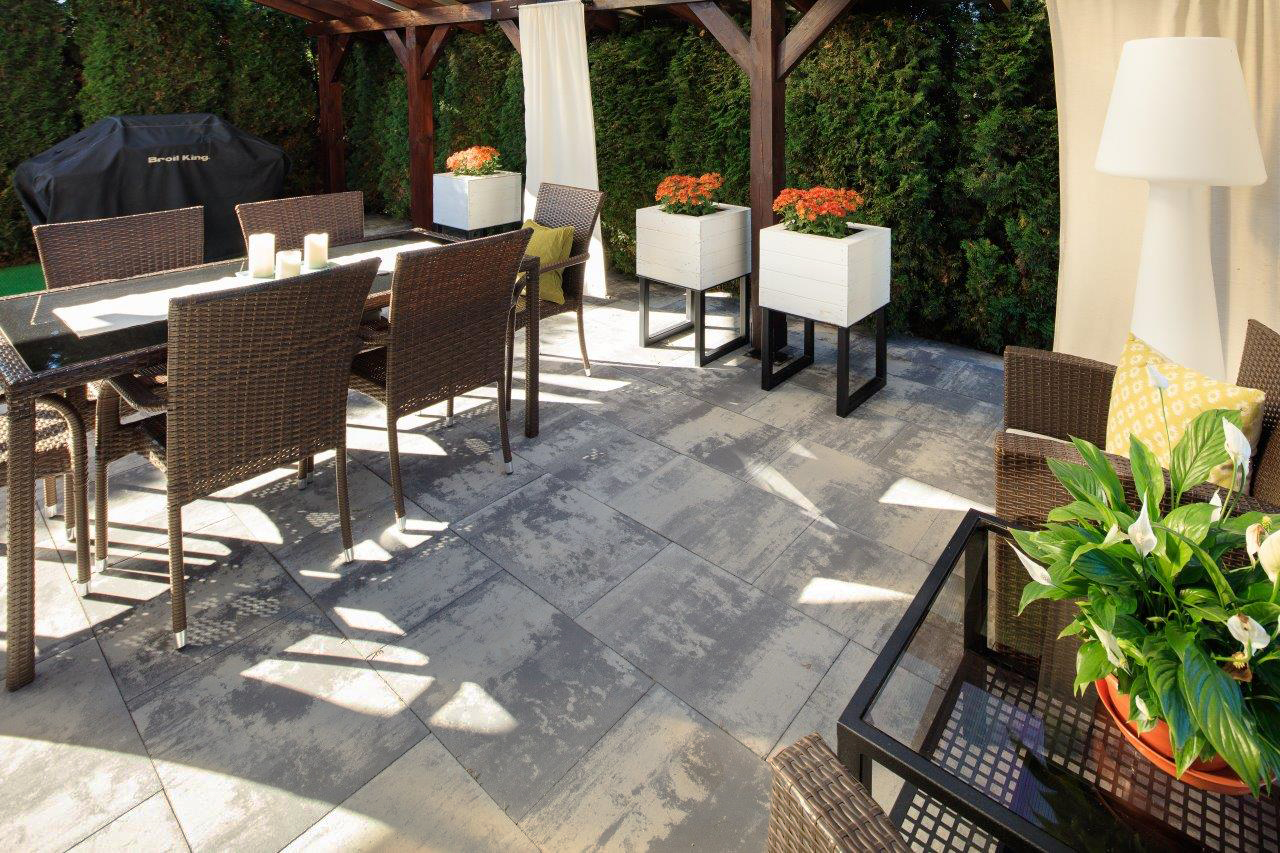 Trendy tarasowe. Ponadczasowe szarości i geometryczne kształty.