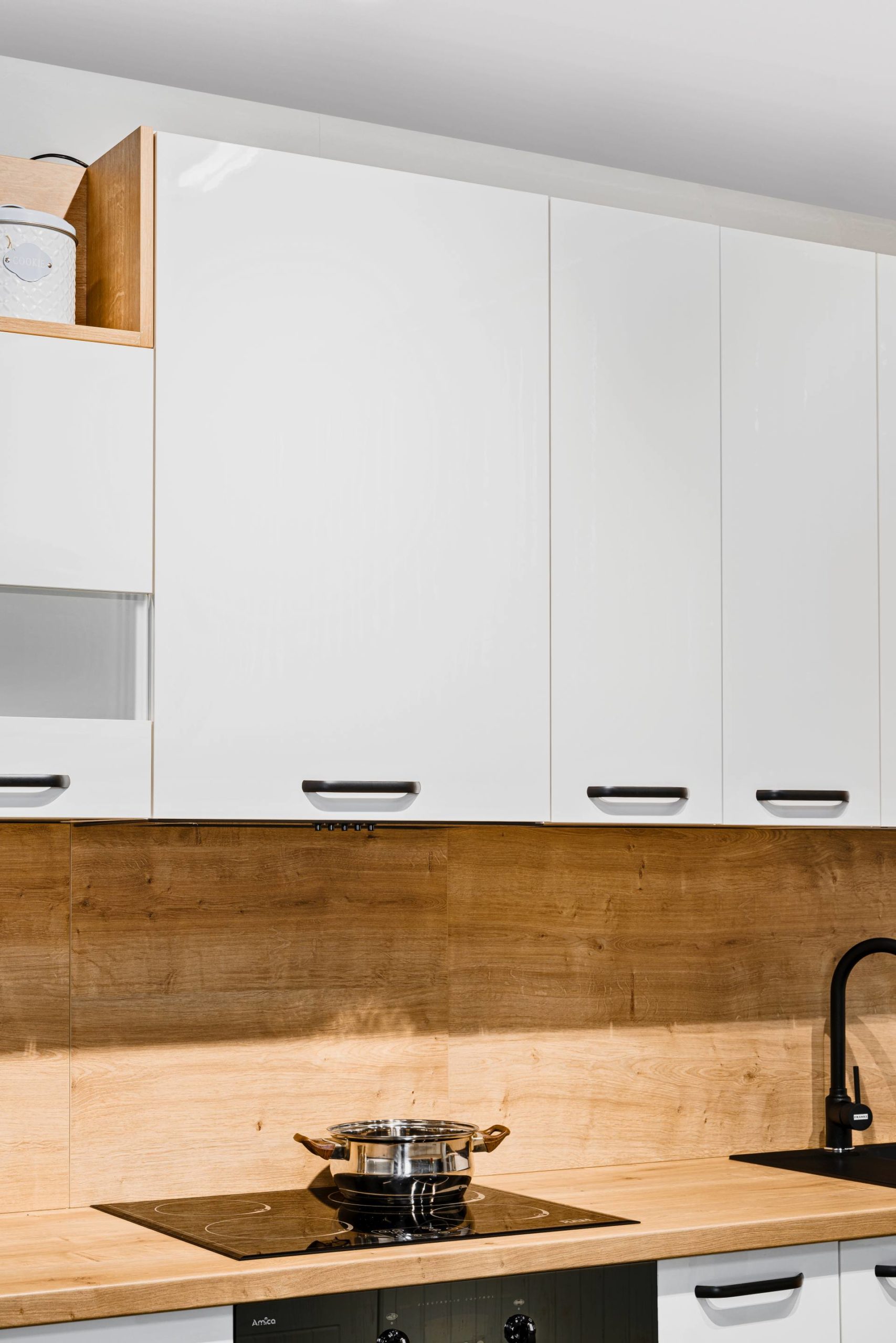 Urządzenie małej kuchni jest nie lada wyzwaniem. Wymaga dobrze przemyślanych decyzji i praktycznych rozwiązań, które pozwolą optymalnie ją zabudować i wyposażyć. Pomysły na aranżację muszą iść w parze z rozsądnym zagospodarowaniem przestrzeni, jaką dysponujemy. Kiedy liczy się każdy centymetr, trzeba efektywnie go spożytkować. Gdzie szukać dodatkowego miejsca, którego tak bardzo brakuje we wnętrzach o niewielkim metrażu ? Najpierw pod sufitem. To całkiem spory zapas powierzchni do przechowywania. Dzięki szafkom do wysokości sufitu nie marnujemy miejsca, ponieważ zabudowując ścianę nie tylko w szerz, ale i na wysokość, wykorzystujemy cały dostępny potencjał. Dodatkowy bonus takiego rozwiązania? Zabudowa do wysokości sufitu nie tylko więcej pomieści, ale prezentuje się atrakcyjnie wizualnie.